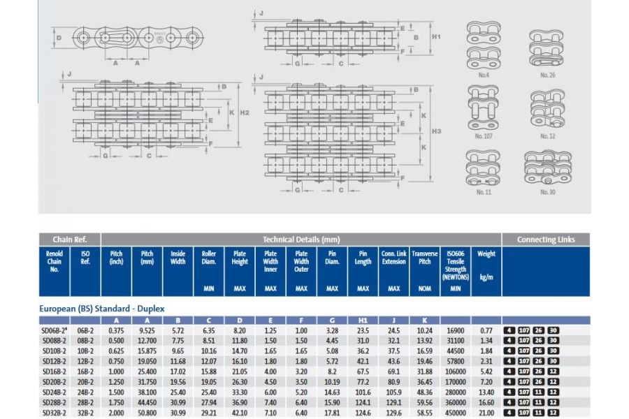 Roller Chain 16B-2 25,4 mm (2,5 m) (RENOLD SD)